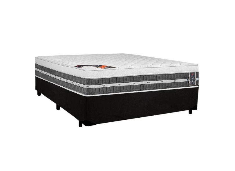 Cama Box Casal Suede + Colchão Premium Gel Molas Pocket Castor Com Euro Pillow 138x188x72cm Cor:preto