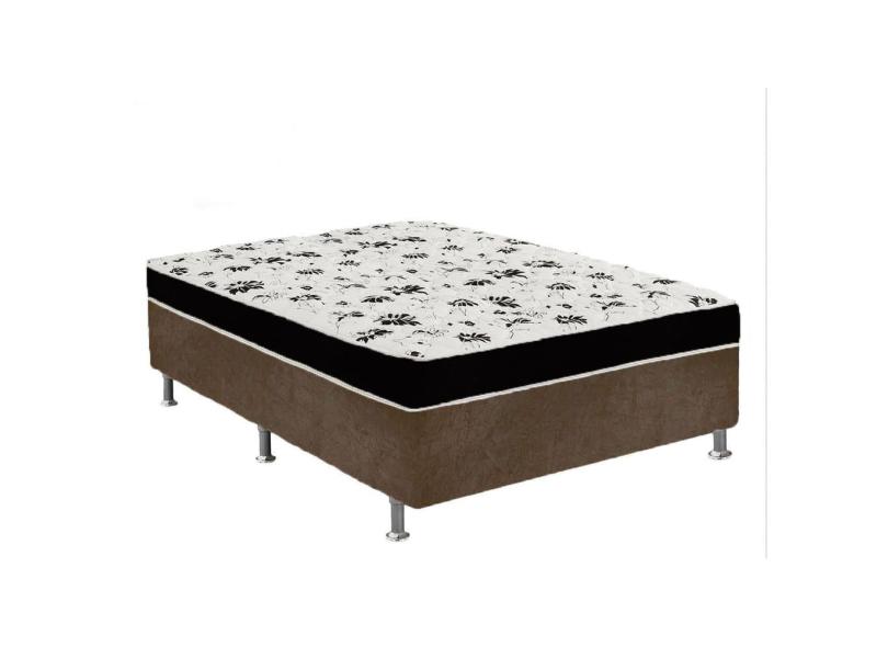 Cama Box Casal Suede Marrom + Colchão Casal Suede Preto Orto Molas Ensacada 138x188x55