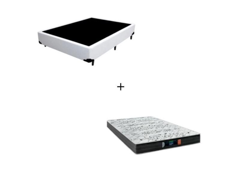 Cama Box Casal - Tecido Sintético Branco com Colchão Extra Firme D28 - Suporta 80Kg