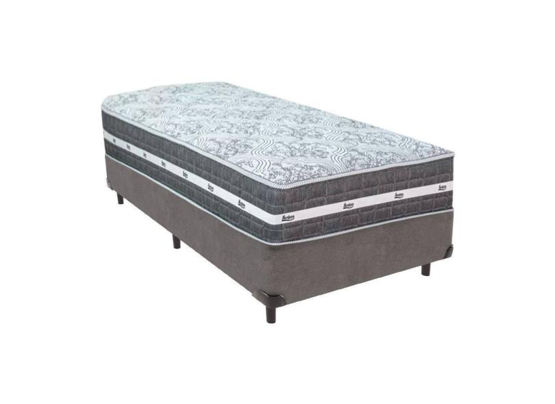 Cama Box Cinza E Colchão Black Graphite Molas Ensacadas Solteiro 88x188x27 Anjos