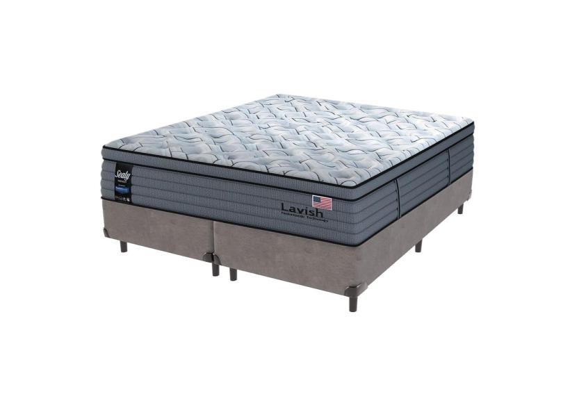 Cama Box Cinza e Colchão Queen Lavish Molas Ensacadas Sealy