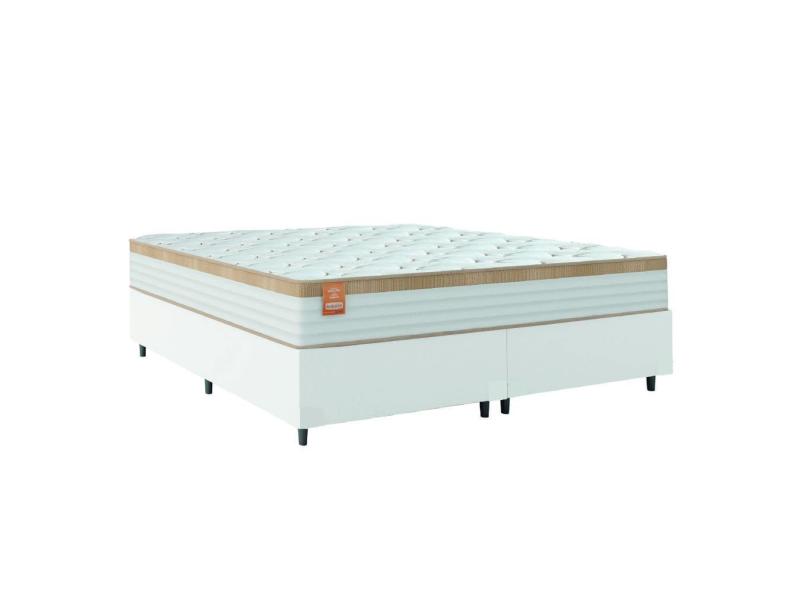 Cama Box Colchão Casal Queen Molas Ensacadas Real 158x198x65cm Linho Branco / Bege Inducol - Suporta até 130kg por Pessoa