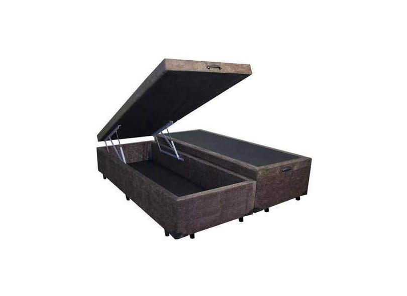 Cama Box Com Baú Bipartido Casal Suede Marrom (Blindado) - Real Comfor