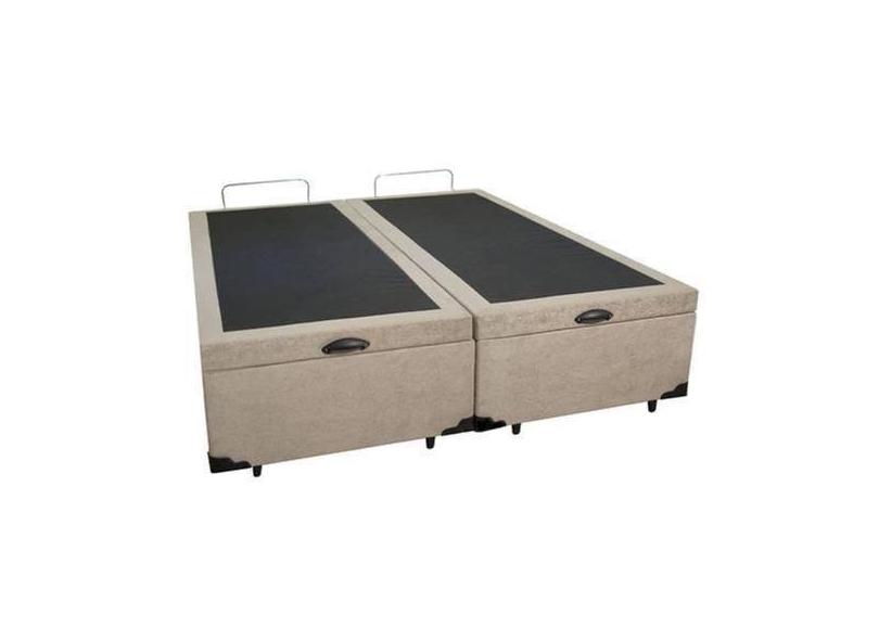 Cama Box Com Baú Bipartido Queen Size Suede Bege - Real Comfort Estofa