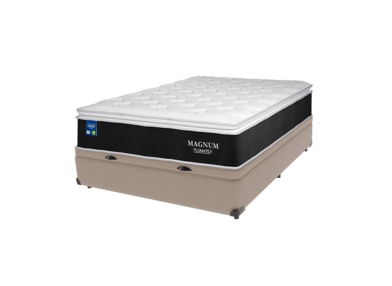 Cama Box com Baú Casal Bege Colchão Plumatex Magnum Pillow Top