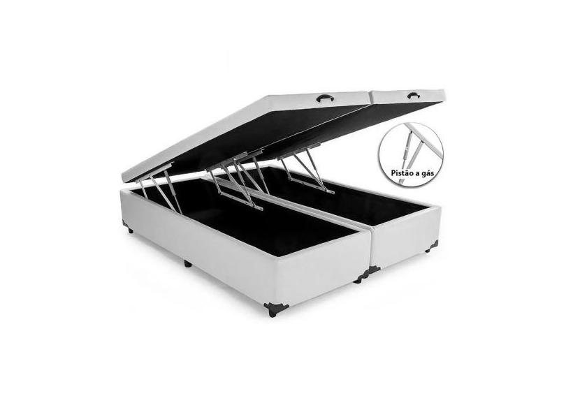 Cama Box com Baú casal Bipartido Sintético Branco - Real Comfort esto