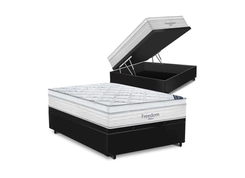 O menor preço encontrado no Brasil para Cama Box Com Baú Casal Blindado + Colchão De Molas Ensacadas - Ortobom - Freedom 138x188x74cm Preto atualmente é R$ 3.072,99.