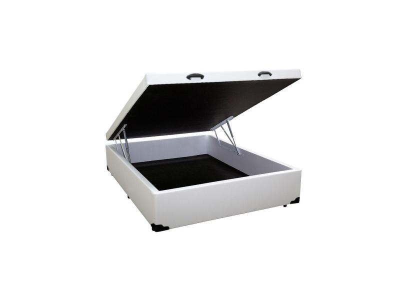 Cama Box Com Baú Casal Sintético Branco 138x188x41 Pistão a Gás