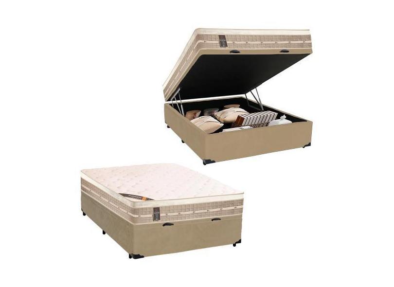 Cama Box Com Baú Casal Suede + Colchão Castor Molas Bonnel Premium Tec