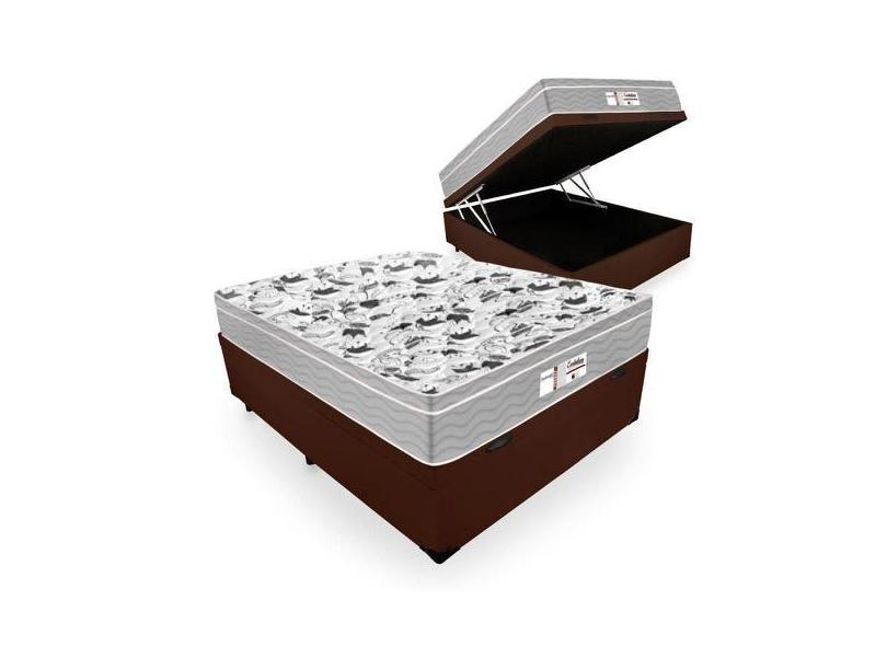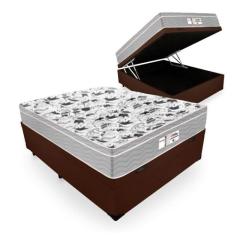 Cama Box Com Baú Casal Tecido Sintético Marrom Com Colchão De Molas En