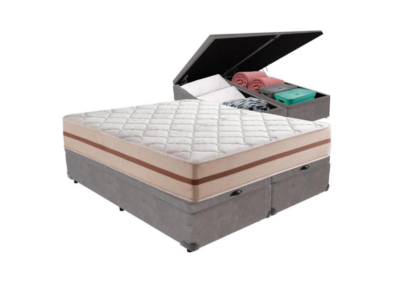 Cama Box com Baú Cinza e Colchão Queen Classic Anjos