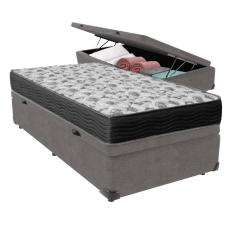 Cama Box Com Baú Cinza Solteiro E Colchão Ortobom D33 Iso100