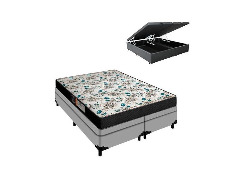 Cama Box Com Baú Queen E Colchão Veneza D33 24cm Cinza - Portobel