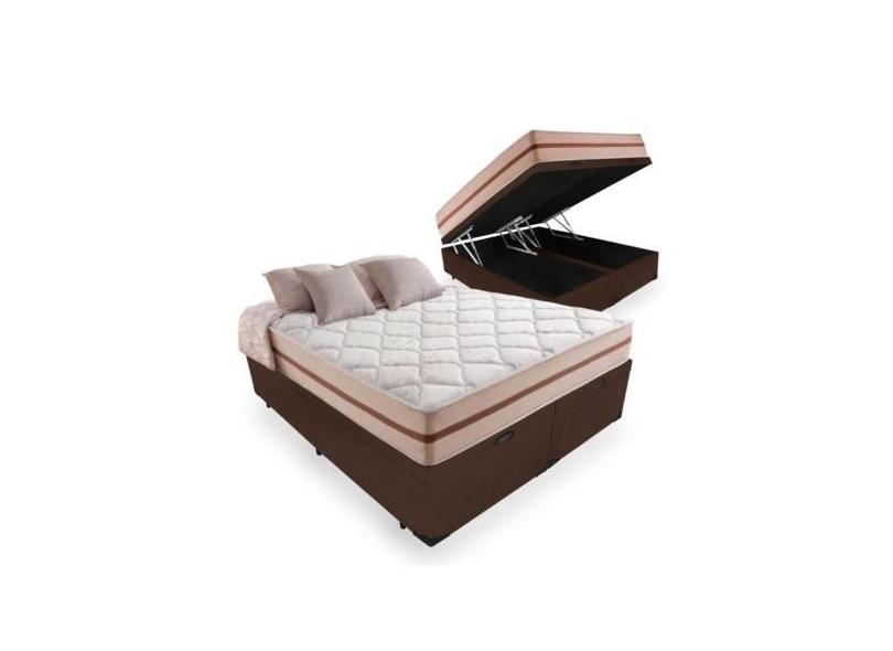 Cama Box Com Baú Queen Marrom + Colchão De Molas Ensacadas - Anjos - C