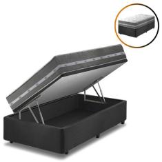 Cama Box Com Baú Solteiro Preto + Colchão Molas Ensacadas Cinza Com Preto