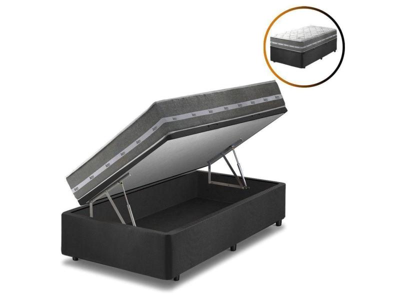 O menor preço encontrado no Brasil para Cama Box Com Baú Solteiro Preto + Colchão Molas Ensacadas Cinza Com Preto atualmente é R$ 1.504,62.