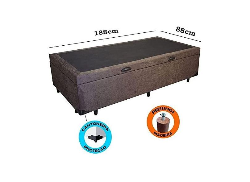 Cama Box Com Baú Solteiro Sintético Marrom (Blindado)