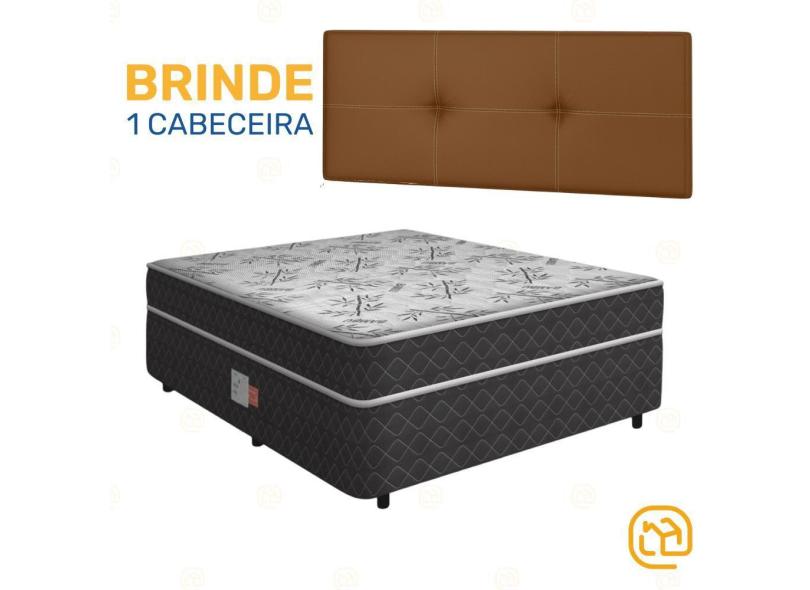 Cama Box Conjugada Casal Ortopédica D26 Unique + Cabeceira Painel Iris Marrom
