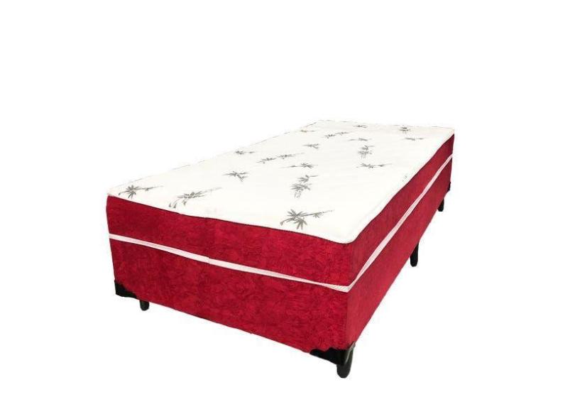 Cama Box Conjugado Ortopédico Solteiro Suede Vermelho 78 X 188 X 40