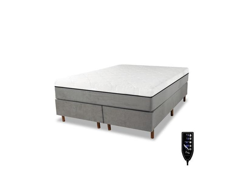 Cama Box e Colchão Magnético Massageador - Therapy Life Basic, Cinza,