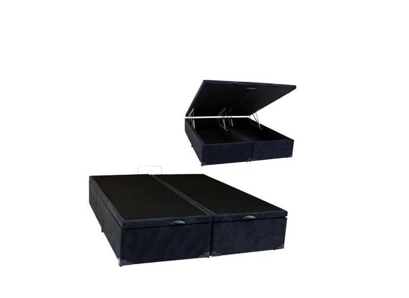 Cama Box Em Baú Casal Bipartido Suede Preto - Real Comfort Estofados