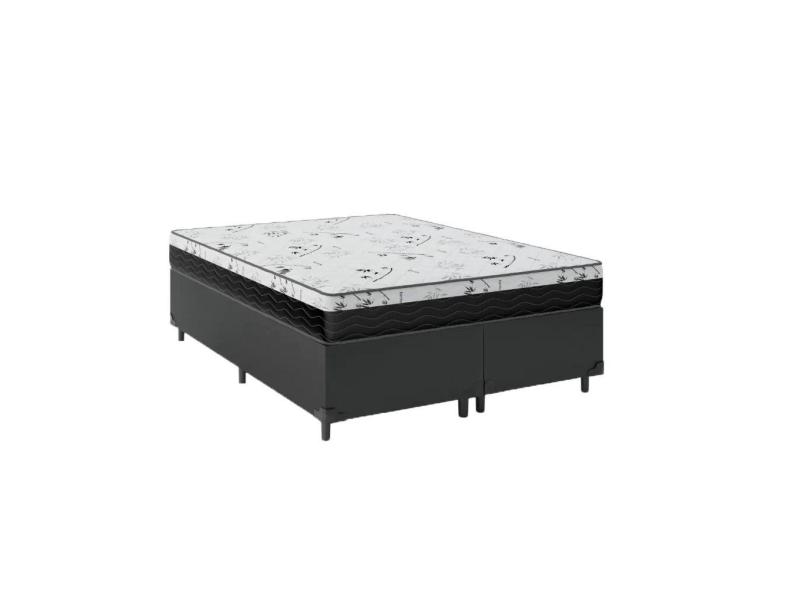 Cama Box King 193 Sintético Preto com Colchão Espuma D33 One Face - Bello Box - 58X193X203
