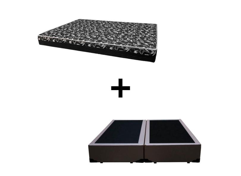 Cama Box King 193 Tecido Sintético Marrom Com Colchão Hamburgo Bello Box - 100% Espuma - D28 Preto 54x193x203