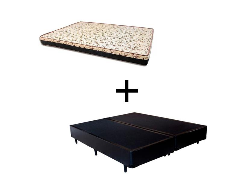 Cama Box King 193 Tecido Sintético Preto Com Colchão Praia Bello Box - D28 Amarelo 57x193x203
