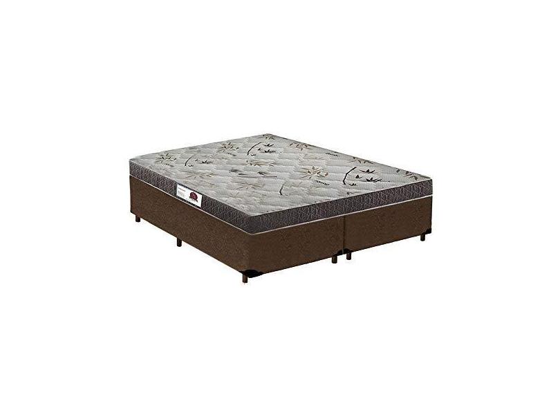 Cama Box King Colchão Espuma D33 Bordado + Box Bipartido Suede Marrom Serra Negra 56x193x203
