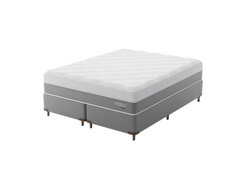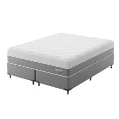 Cama Box King com Colchão Sublime Mola Ensacada e Espuma Viscoelástica (32x193x203) Cinza e Branco