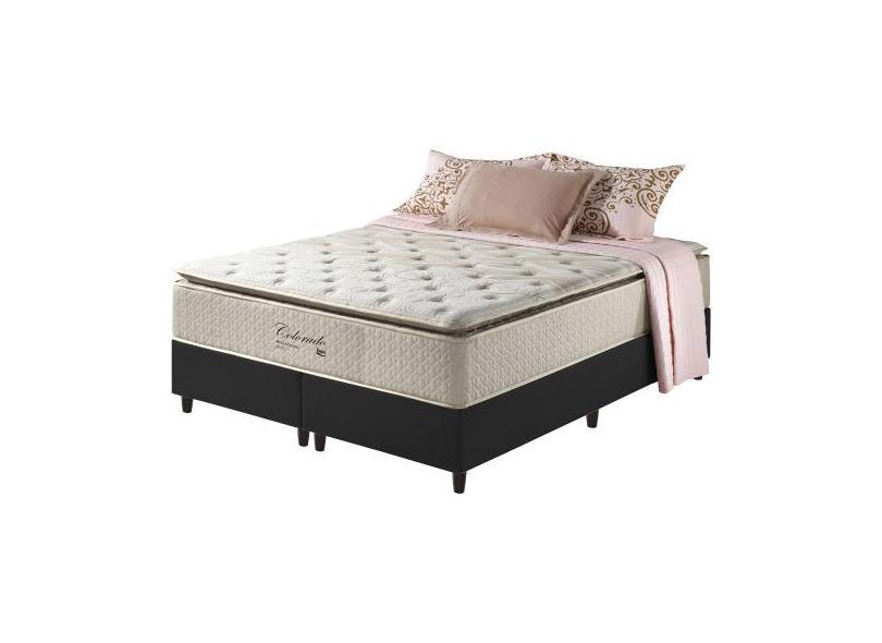 Cama Box King Preto + Colchão Molas Ensacadas Visco Gel Pillow Top Col