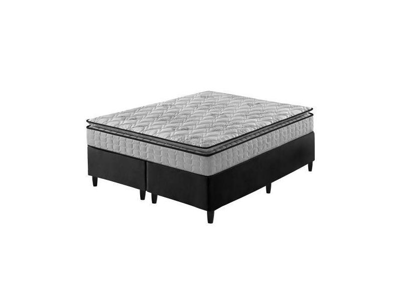 Cama Box King Preto + Colchão Ortopedico Espuma D33 Pillow Top Hanover