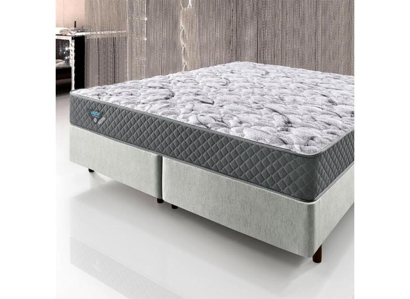 Cama Box King Size 193x203 Courino Linho Branco Com Colchão Mola Ensacada
