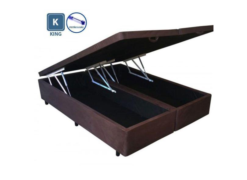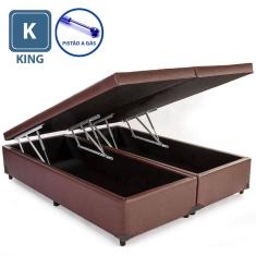 O menor preço encontrado no Brasil para Cama Box king size com Bau Pistão a gás marrom sintético Bipartido - 193x203 atualmente é R$ 1.137,95.