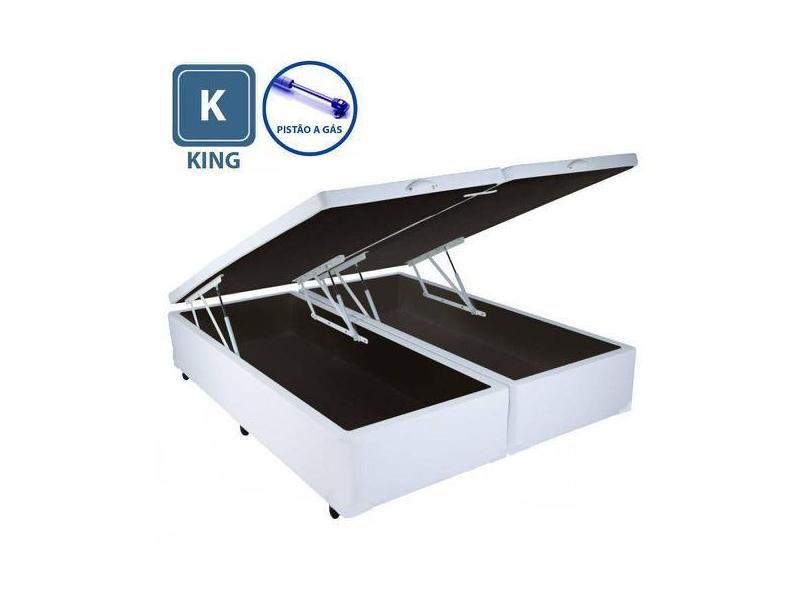 Cama Box King Size Com Baú Pistão A Gás Premier Sintético Branco Bipar