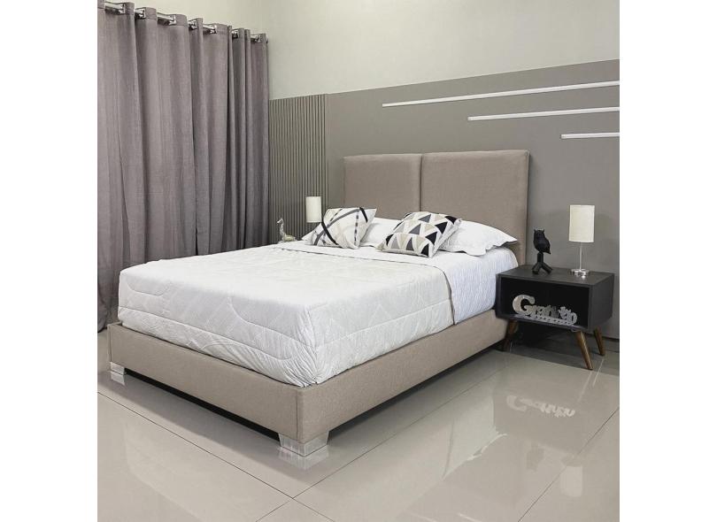 Cama Box Luxo Com Cabeceira Módena Linho Bege Rbl King 1,95 X 2,05