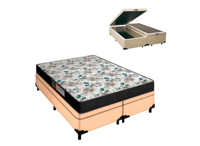 Cama Box Queen Baú Bege Colchão 20 de Altura Veneza Portobel