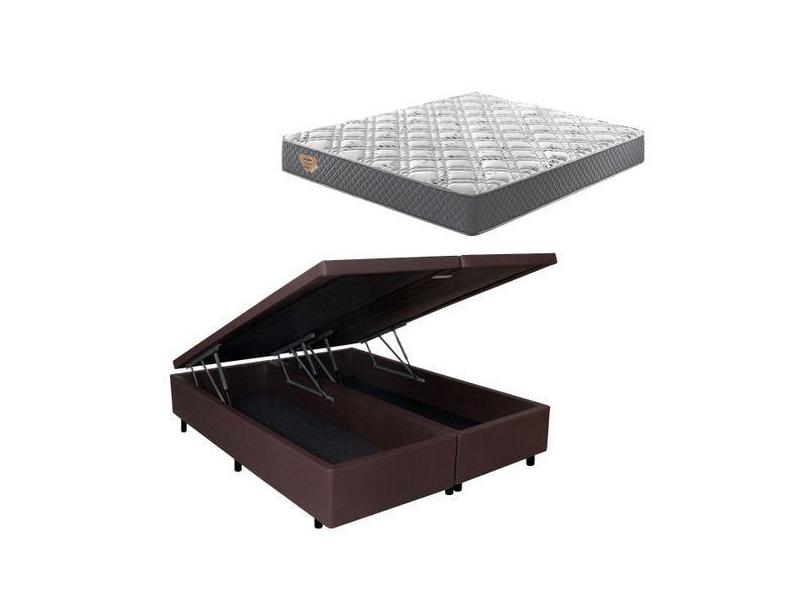 Cama Box Queen Baú Marrom + Colchão Adapto Molas Ensacadas 158X198 - C