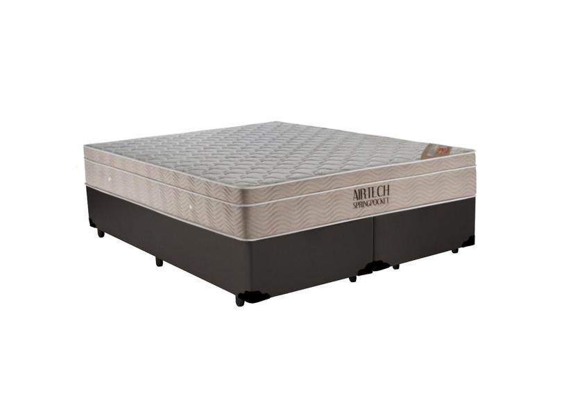 Cama Box Queen Bipartido Sintético + Colchão Ortobom Airtech Molas Ensacadas 158x198x65 Marrom