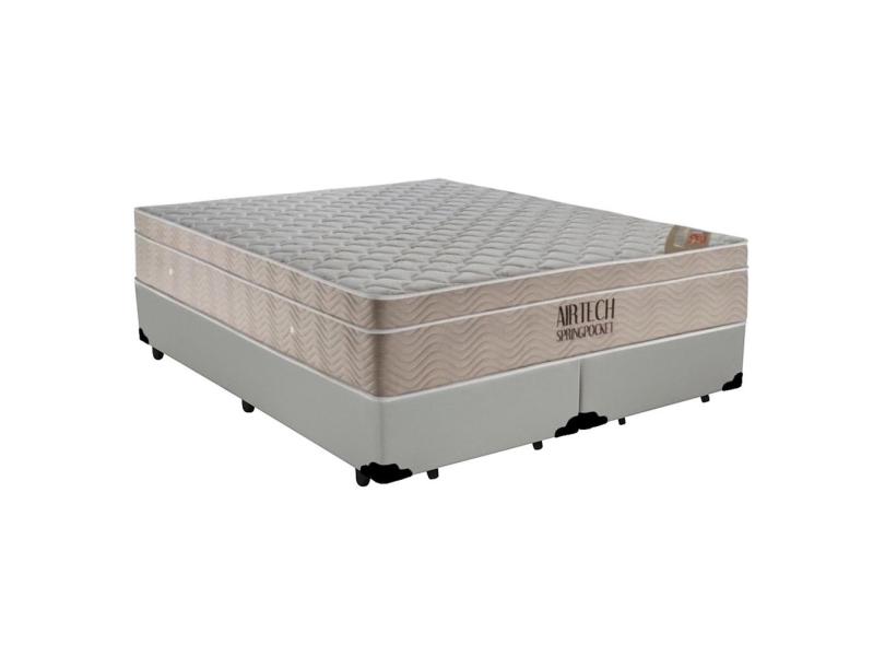 Cama Box Queen Bipartido Sintético + Colchão Ortobom Airtech Molas Ensacadas 65x158x198 Branco