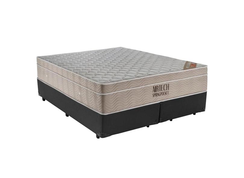 Cama Box Queen Bipartido Sintético + Colchão Ortobom Airtech Molas Ensacadas 65x158x198 Cinza
