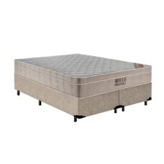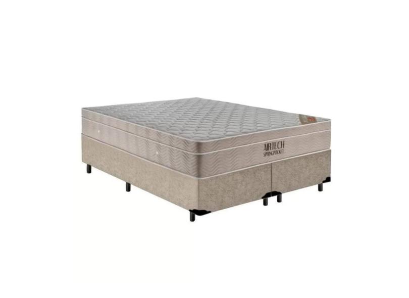Cama Box Queen + Colchão de Molas Ensacadas Ortobom Airtech Bege 158cm - Suporta até 150 Kg Por Pessoa