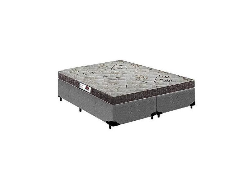 Cama Box Queen Colchão Espuma D45 Bordado + Box Bipartido Suede Cinza Serra Negra 59x158x198