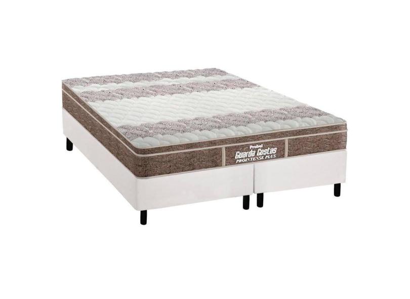 Cama Box Queen: Colchão Espuma Probel D33/EP Guarda Costas Próintense Plus + Base CRC Suede White(158x198)