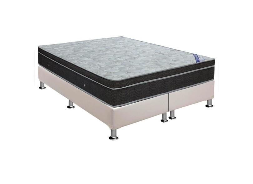 Cama Box Queen: Colchão Molas Ortobom Nanolastic Light Selado + Base CRC Courano Branco(158x198)