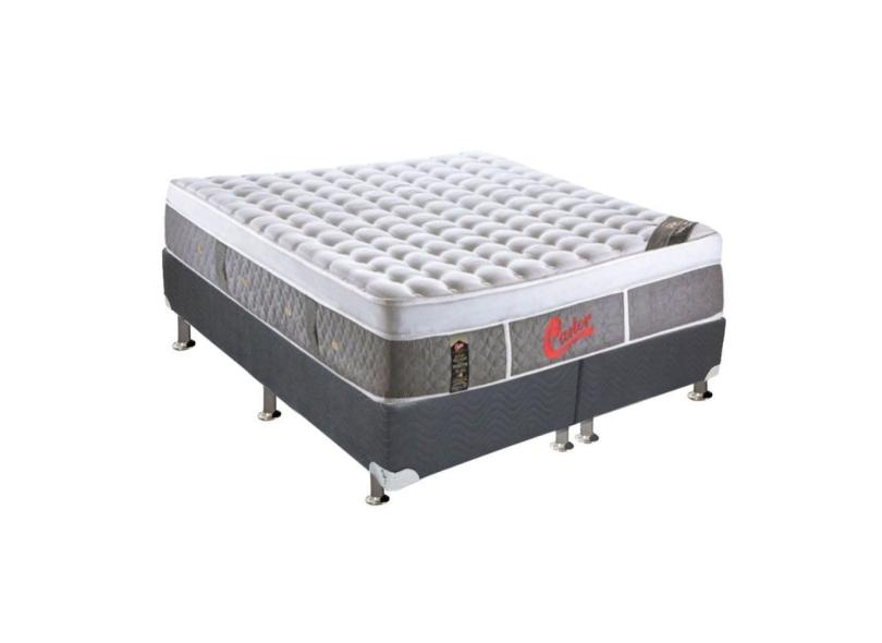 Cama Box Queen: Colchão Molas Pocket Ensacadas Castor Light Stress Plush + Base Cinza(158X198)