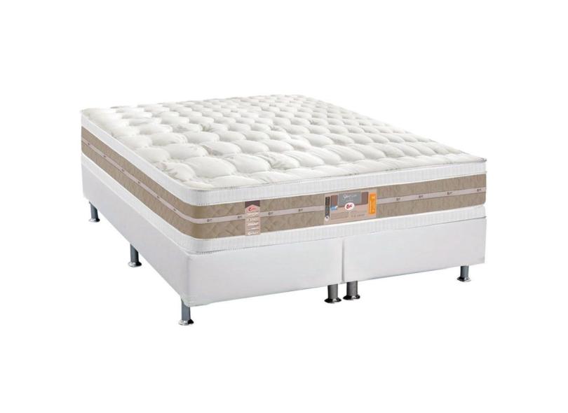 Cama Box Queen: Colchão Molas Pocket Ensacadas Castor Silver Star Air Df + Base Branco(158X198)