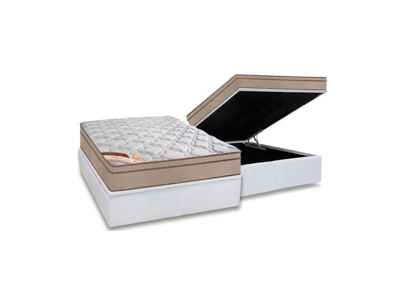 Cama Box Queen Com Baú Branco + Colchão Queen de Mola Castor Revolutio