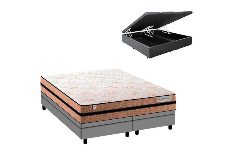 Cama Box Queen com Baú Cinza e Colchão Smart Milano Plumatex