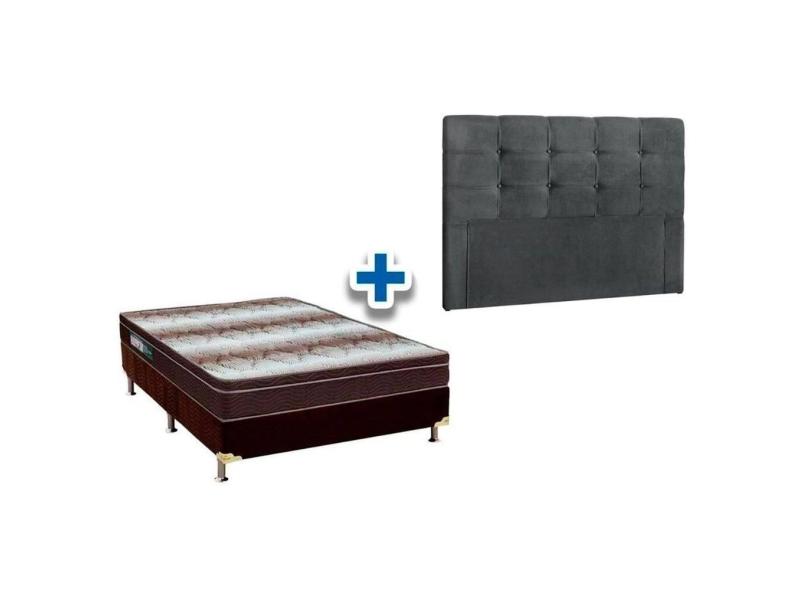 Cama Box Queen CRC + Colchão Ortopédico Light Ortobom + Cabeceira Clean Suede Cinza
